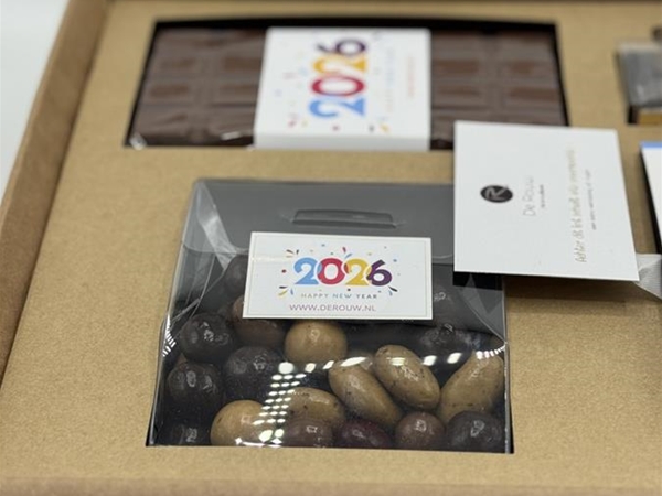 Kies bij het bestellen voor de optie: gevuld met blauwe of roze chocolaatjes.